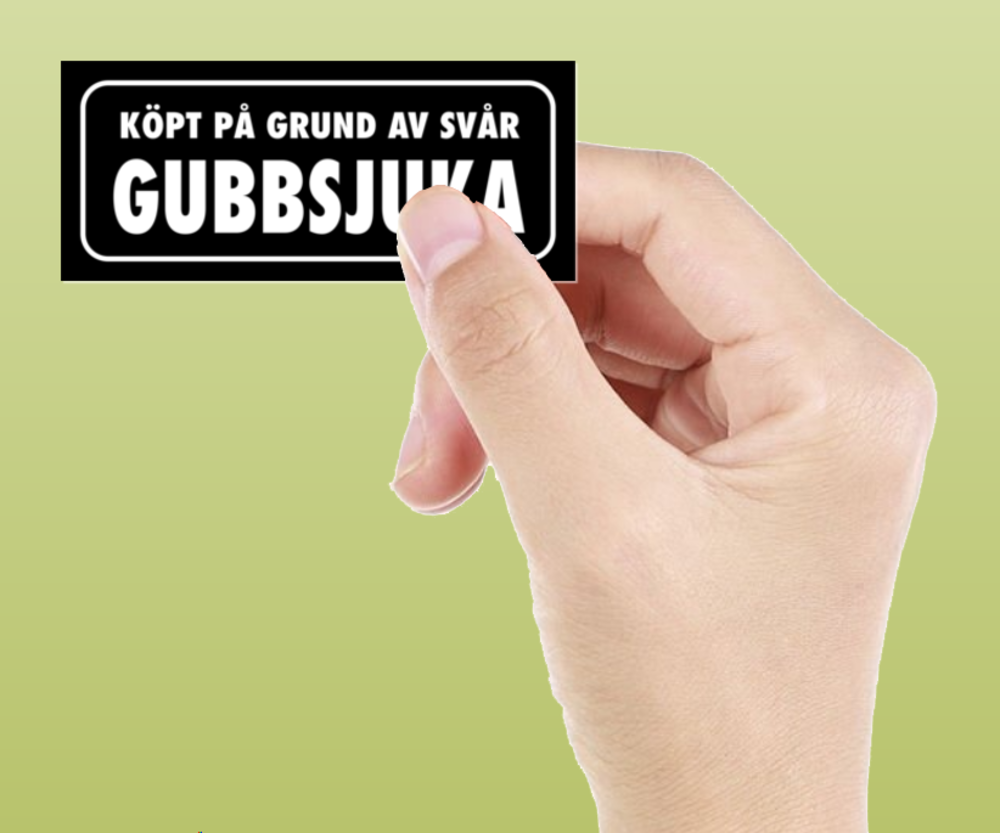 Skämtdekal Köpt på grund av svår gubbsjuka