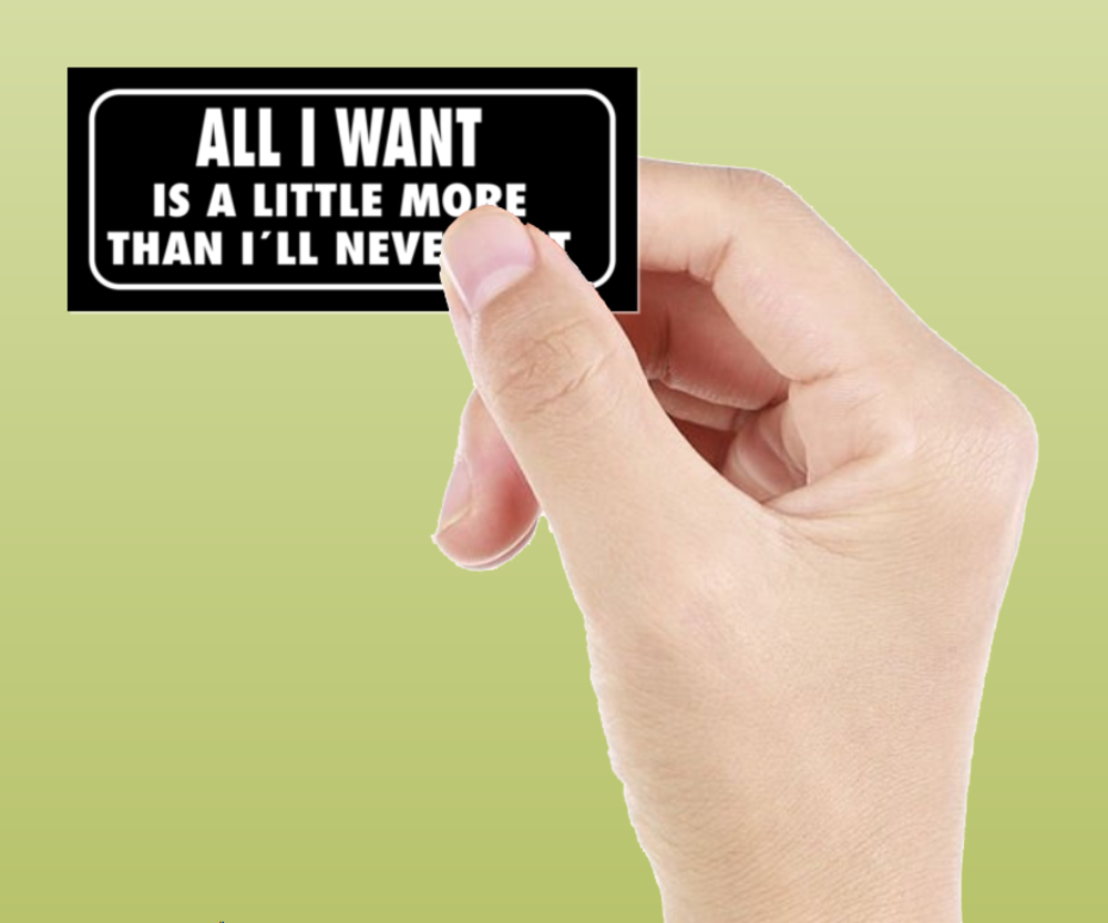 Skämtdekal All I want is a little more than I´ll never get
