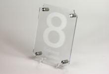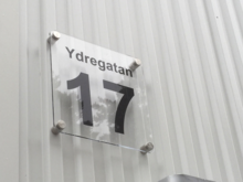 Laserskuren gjuten 3mm akrylplast. Denna produkt har två olika utföranden, med eller utan klar framsida. Levereras med distanser och monterad text. Önskar du annat utseende eller storlek på din fasadskylt så är du välkommen att mejla in din förfrågan till: order@dekaltrim.nu